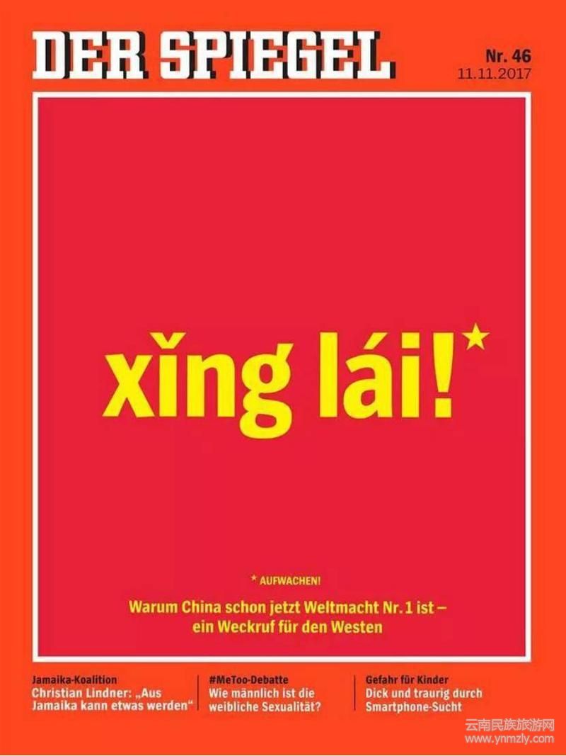 無獨(dú)有偶。德國《明鏡周刊》11月刊也以中國為封面。紅色打底、字體金黃,漢語拼音“xing lai!”(醒來)的標(biāo)題,極具視覺沖擊力。