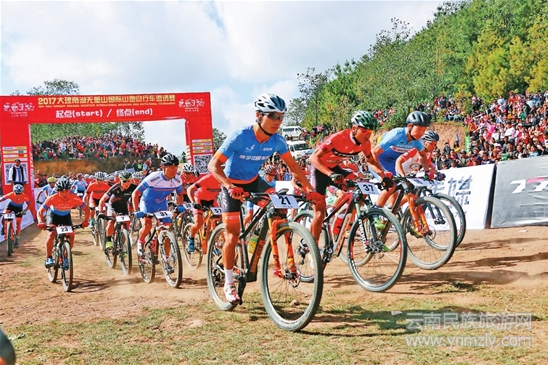 16日中午,“2017大理南澗無量山國際山地自行車邀請賽”在大理白族自治州南澗縣無量藥谷舉行。來自全國的12支車隊,包括14位冠軍在內(nèi)的60位車手,在2017年歲末奉獻了一場速度與激情的盛宴。
