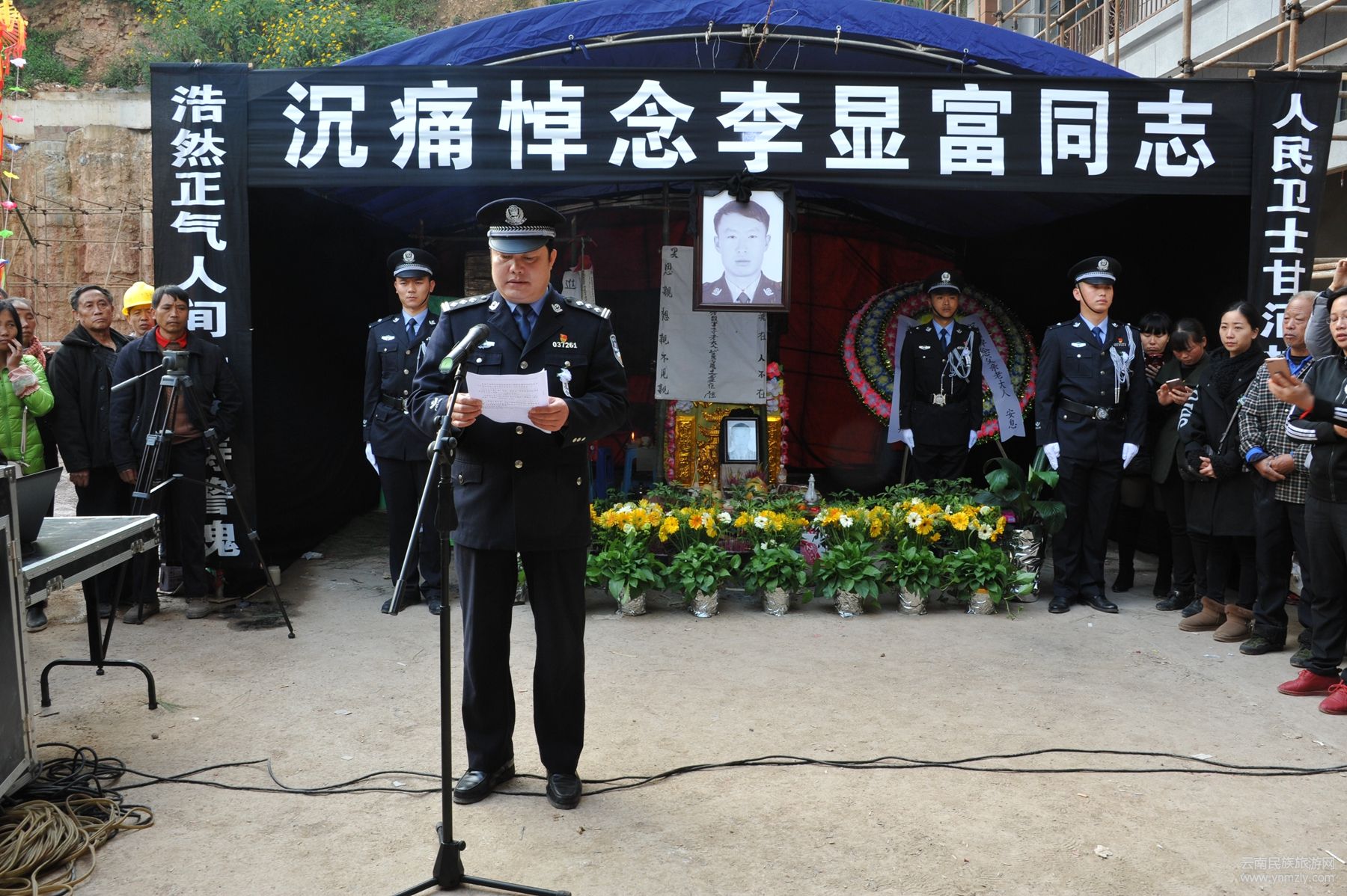 云南省公安廳刑偵總隊副政委王建明、文山州公安局副局長程軍,富寧縣縣長陸勇、富寧縣委副書記、政法委書記邵麗華等領(lǐng)導(dǎo)以及富寧縣黨政領(lǐng)導(dǎo)班子、文山州各縣公安局代表,富寧縣公安局黨委和邊防、消防、武警官兵及李顯富生前親屬好友等300人參加了追悼會。