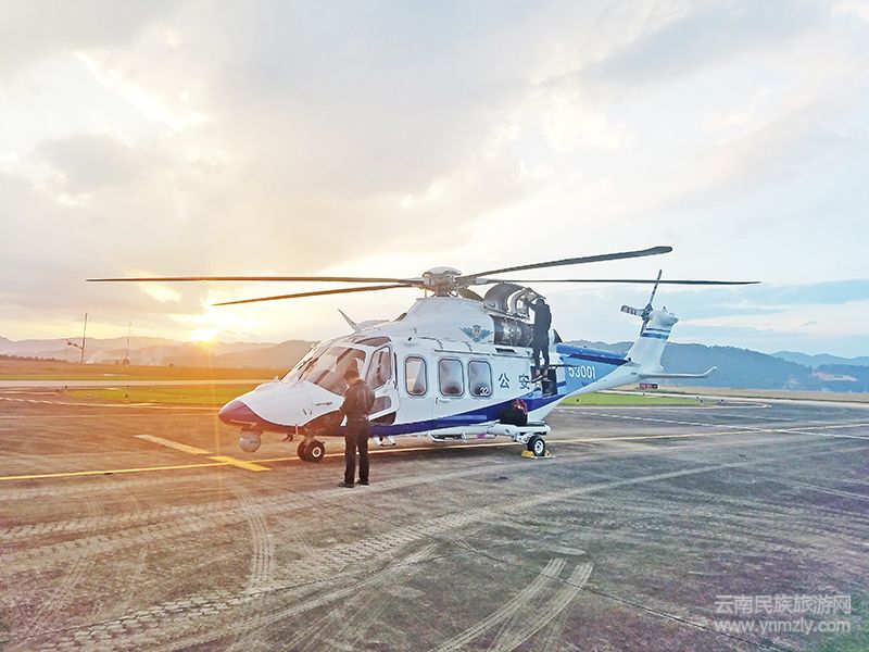 直升機(jī)順利抵達(dá)大理,完成大理市警務(wù)飛行臨時(shí)起降點(diǎn)的勘察和試降后,在大理荒草壩機(jī)場(chǎng)落地。