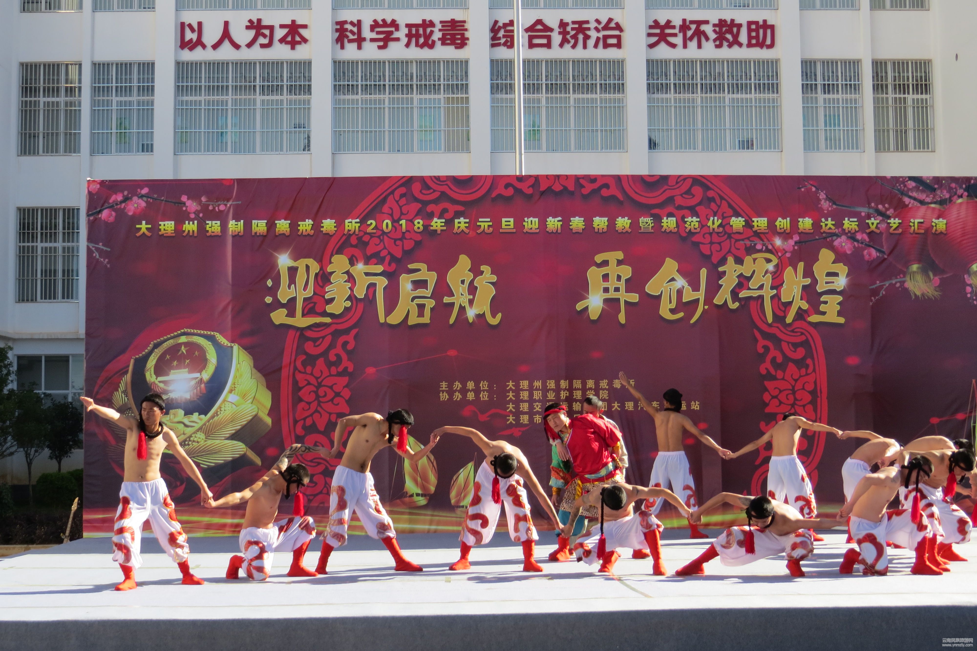 “迎新啟航再創(chuàng)輝煌”新春幫教、規(guī)范化管理創(chuàng)建達(dá)標(biāo)文藝匯演,共組織了17個(gè)節(jié)目,節(jié)目?jī)?nèi)容包括:舞蹈、獨(dú)唱、男女合唱、器樂(lè)合奏、原唱歌曲、小品、歌伴舞和魔術(shù)等。戒毒學(xué)員自編自導(dǎo)表演節(jié)目8個(gè);大理交通集團(tuán)、大理市愛(ài)樂(lè)樂(lè)團(tuán)、大理護(hù)理職業(yè)學(xué)院及強(qiáng)戒所民警職工分別表演了9個(gè)不同形式的節(jié)目;文藝匯演在不間斷的掌聲中持續(xù)了整整3個(gè)小時(shí)。