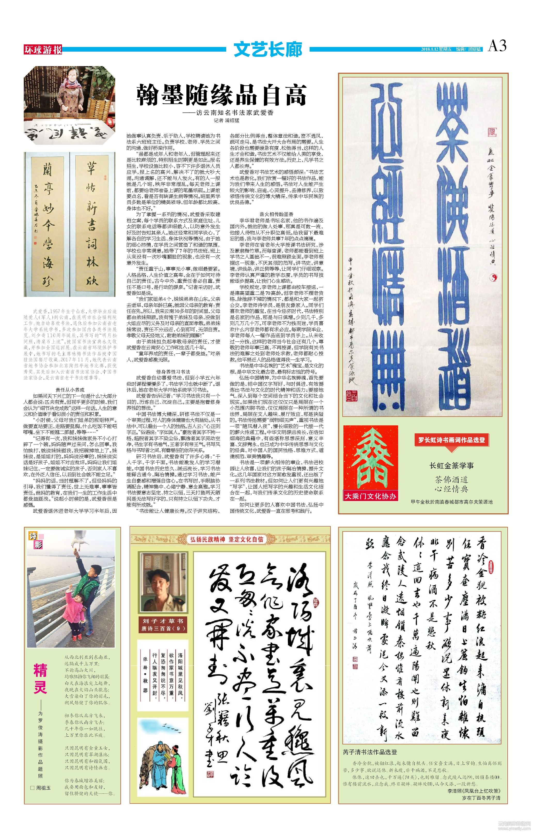● 翰墨隨緣品自高 ——訪云南知名書法家武愛香 ( 2018-01-12 )