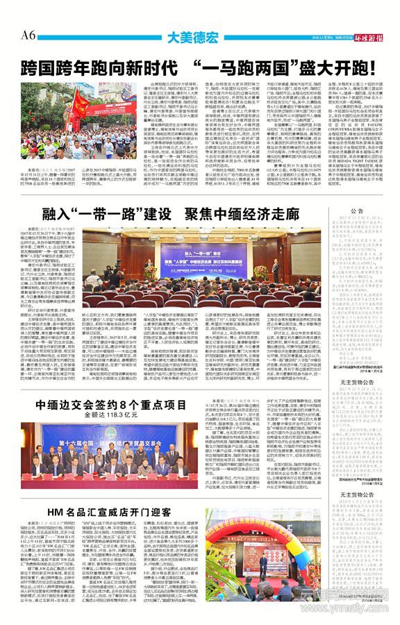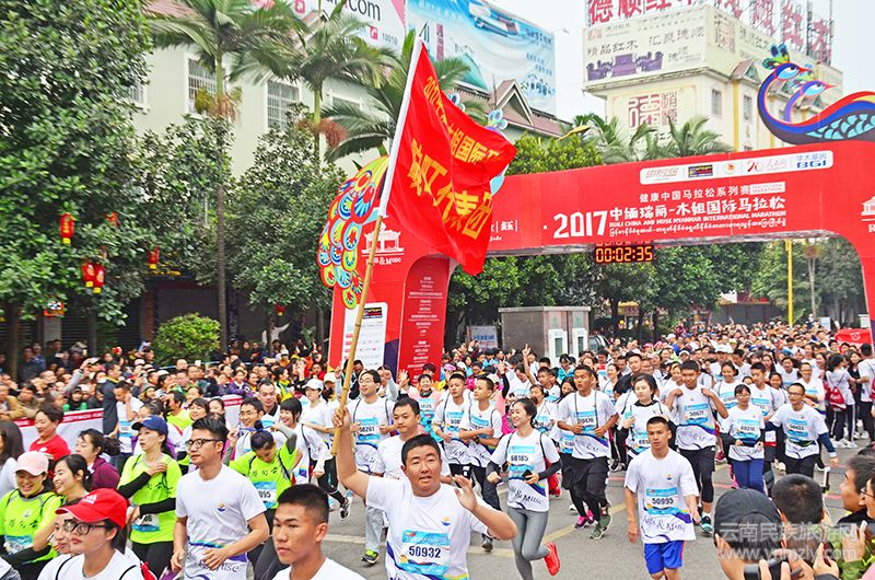 2017年12月31日上午,隨著一陣喜慶的鳴笛聲響起,來(lái)自19個(gè)國(guó)家和地區(qū)的7508名運(yùn)動(dòng)員一股激流奔進(jìn)的山泉在2017中緬瑞麗-木姐國(guó)際馬拉松開(kāi)賽起跑儀式上盛大開(kāi)跑,用跨國(guó)跨年、健康向上的方式迎接新一年的到來(lái)。