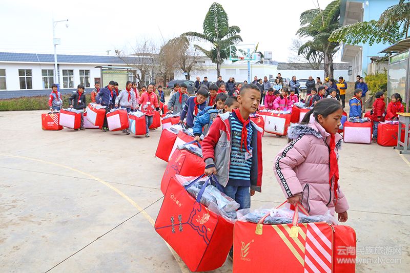 蒙自市旅游投資開發(fā)有限公司干部職工和各愛心企業(yè)慰問成員走進(jìn)新莊小學(xué),為158名貧困學(xué)生集中發(fā)放了慰問物資,共捐贈學(xué)生學(xué)習(xí)物資158套、棉被158床、體育用品一批。受捐學(xué)生們拿著手里的東西,臉上洋溢著開心的笑容。