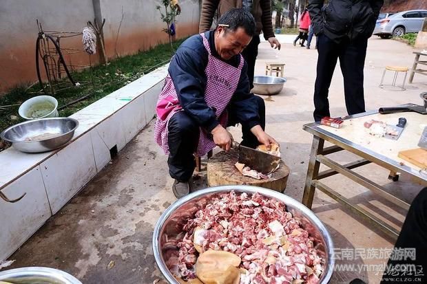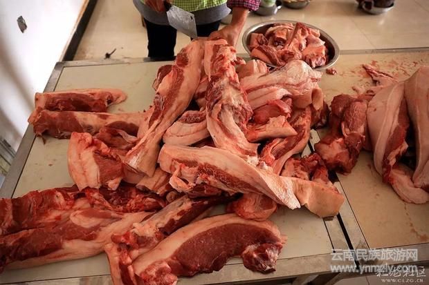 “殺豬飯”在云南很多地方都有,每到歲末臘月,各個(gè)縣區(qū)村村寨寨的群眾紛紛開(kāi)始張羅著選個(gè)好日子宰年豬,擺下豐盛的宴席,邀請(qǐng)親朋好友來(lái)到自家亮堂堂的農(nóng)家小院里,熱熱鬧鬧地吃上一頓豐盛的殺豬飯,渲染出辭舊迎新的年味。