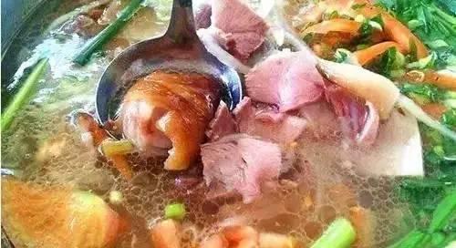煮好的豬腳,再放入當(dāng)?shù)氐乃岵耍?/p>