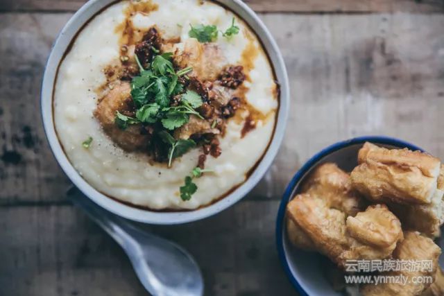 在北方有豆?jié){油條,而在昆明一碗稀豆粉蘸油條才是地道的云南早餐。稀豆粉是用上好的白豌豆磨粉,經(jīng)煮制成稀粥狀而成,它與豌豆粉“師出同門”,一個粥狀、一個塊狀,都是將豌豆做出極致的美食產(chǎn)物。美食老饕們還會用稀豆粉拌米線、卷粉來吃,口感滑潤扎實,回味無窮。