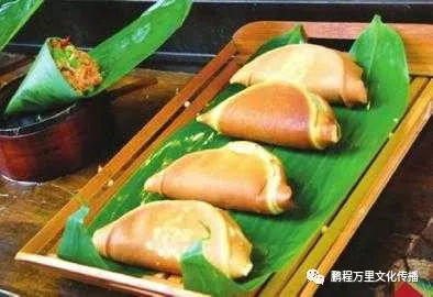 葉兒粑,制作葉兒粑選料考究,工藝精細,具有色綠形美、細軟爽口的特點,為四川傳統(tǒng)名小吃之一。用糯米粉面包麻茸甜餡心或鮮肉咸餡心,置旺火蒸。特色是清香滋潤,醇甜爽口,荷香味濃,菜分兩味,咸鮮味美。