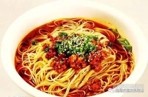 擔擔面,據(jù)說源于挑夫們在街頭挑著擔擔賣面,因而得名,成菜面條細薄,鹵汁酥香,咸鮮微辣,香氣撲鼻,十分入味。