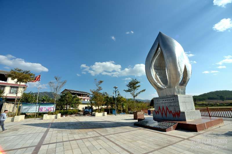 七七小組水塘上面的廣場上,聳立著“景谷6.6級抗震紀念碑”。廣場一側的“景谷6.6級地震抗震救災和恢復重建感恩教育基地”里,一張張圖片講述著黨政軍民團結一心、抗震救災、重建家園的決心和信心。