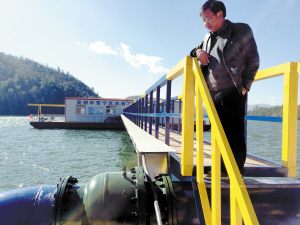 記者在現(xiàn)場看到,浮船取水是利用浮筒結(jié)構(gòu)船體作為取水平臺,取水泵安裝在船體上,泵隨船移動,船隨水位變化自動升降。通過調(diào)整聯(lián)絡(luò)管和岸上輸水管道的相對連接,來適應(yīng)地理?xiàng)l件及水位落差變化等因素的影響,抽取水庫水面以下1.5米至2米的優(yōu)質(zhì)水。這種浮動式取水裝置與傳統(tǒng)的泵站結(jié)構(gòu)相比,不僅安裝、檢修、管理方便,還縮短了建設(shè)周期。浮船泵站不需要等到枯水位才能進(jìn)行施工,采用自動化控制系統(tǒng)操作簡單,無水下操作部件,省掉了圍堰筑壩、沿岸建站、高深度開挖基礎(chǔ)、高難度建筑泵房的所有建設(shè)復(fù)雜的水工建筑物,大大節(jié)省了工程投資,而且機(jī)動靈活,取水水質(zhì)相對較好。