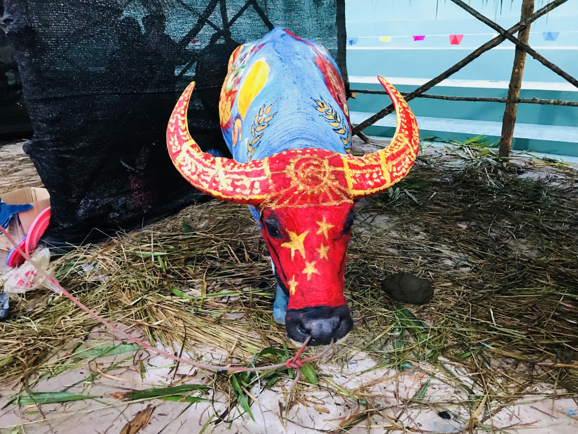 比賽之前,參賽隊(duì)們提前給牛洗好了澡,剃了牛毛,準(zhǔn)備在比賽時(shí)大顯身手。各參賽繪畫師們專心致志、一絲不茍著揮動(dòng)著手中的畫筆,懷著對(duì)藝術(shù)的無限追求,盡情揮灑,在牛的身上描繪出一幅幅活靈活現(xiàn)的圖案。賽場(chǎng)上,一條條色彩斑斕的火牛昂首挺胸地走動(dòng)著,向人們展示著大豐收、美麗中國夢(mèng)、祥和的邊城等在黨的領(lǐng)導(dǎo)和各族人民的共同努力下所取得的豐碩成果。