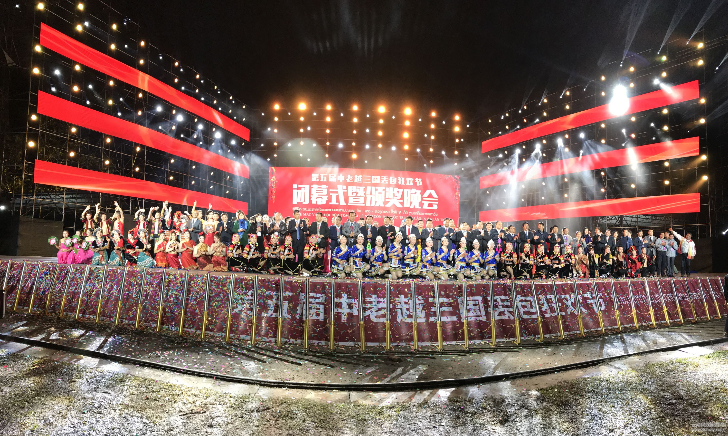 2018年1月1日晚,第五屆中老越三國丟包狂歡節(jié)閉幕式暨頒獎晚會在江城縣舉行,為期三天的第五屆中老越三國丟包狂歡節(jié)正式落下帷幕。老撾豐沙里省代表團、烏多姆塞省代表團,越南奠邊省奠邊府市代表團、萊州省代表團及省、市、縣相關(guān)部門領(lǐng)導(dǎo)、運動員、企業(yè)家等出席閉幕式。