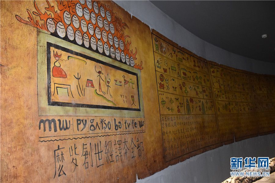 納西史詩《創(chuàng)世紀(jì)》展示墻。和占惠 攝