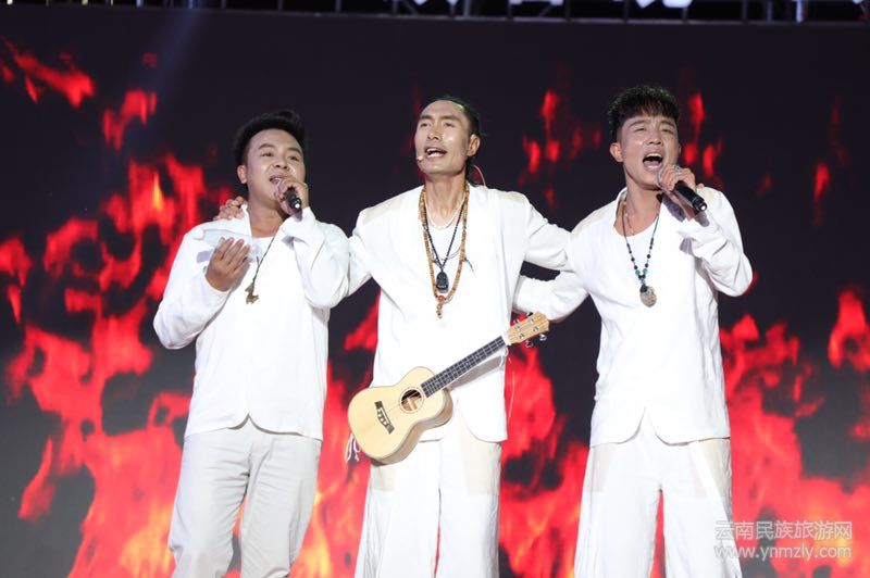 演出中,精彩的歌舞表演,將晚會推向了高潮,一陣陣的喝彩聲此起彼伏。《一壺老酒》、《彩云藍天》、《陽光會把你照耀》、《納西三部曲》等節(jié)目表演,贏得了現(xiàn)場熱烈地掌聲。嘹亮的歌聲響徹夜空,經久不息。