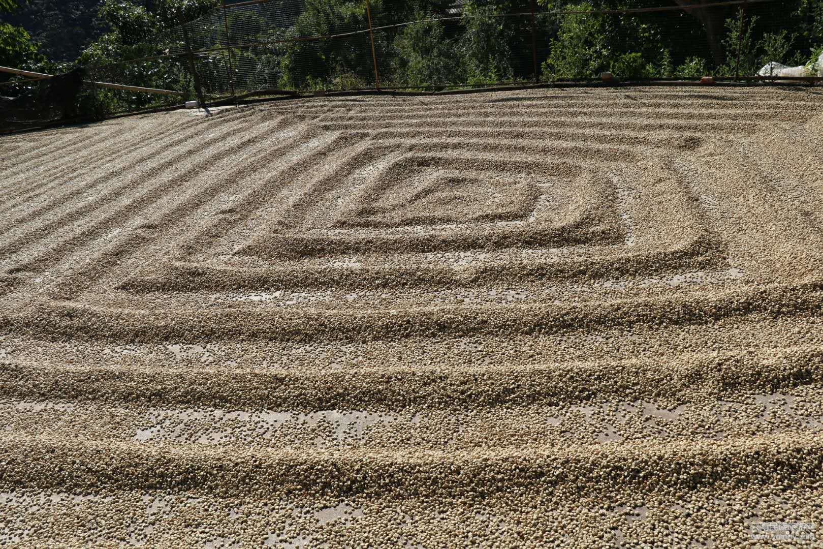工人在翻曬咖啡豆