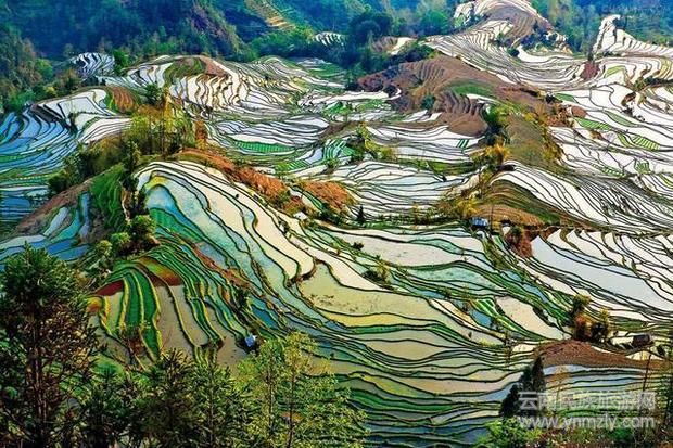 梯田的美離不開水的襯托,元陽梯田每年12月灌水,到了第二年1月正是最漂亮的時候。