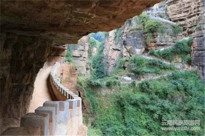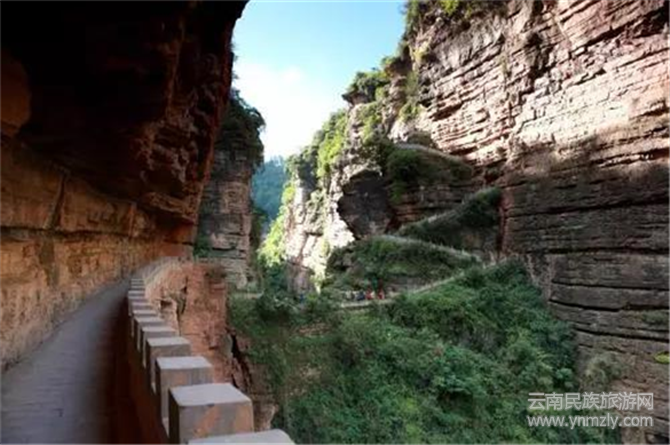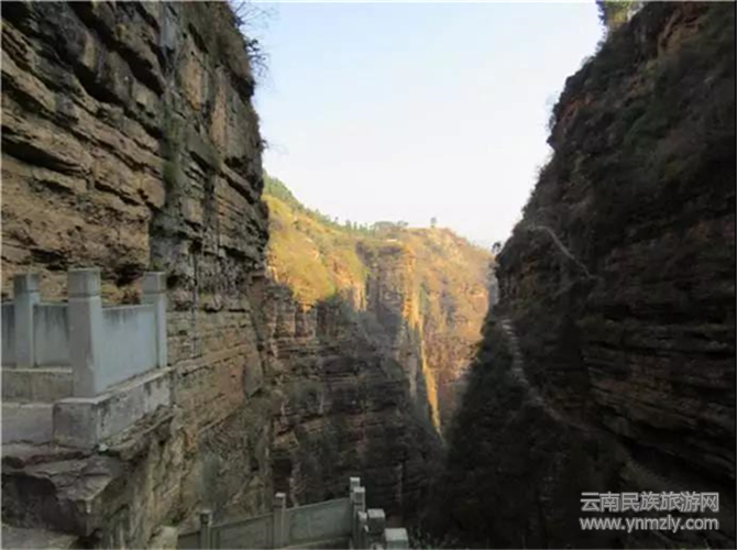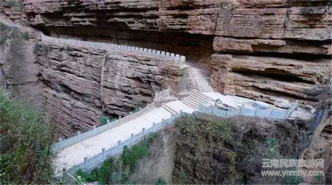 走過(guò)天生橋,站在懸崖的棧道上,雖然地是平的,但還是給人一種仿佛將要墜入崖底的感覺(jué)。