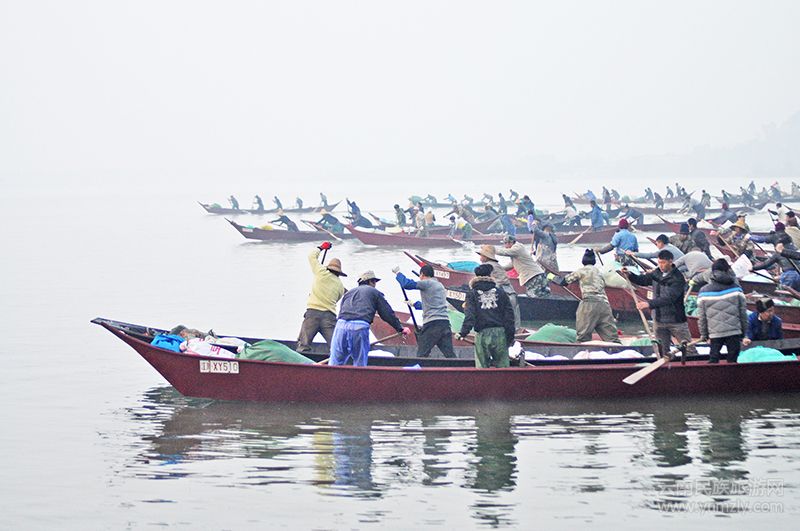 魚是中國傳統(tǒng)的春節(jié)年畫和團圓飯中不可缺少的元素,國人付于了它非常美好的寓意,預(yù)示年年有余,五谷豐登。因此,每年云南江川星云湖的“開漁”就變成當(dāng)?shù)氐囊粋€節(jié)日。2017年12月25日上午8時,隨著“砰、砰、砰”三發(fā)信號彈升空,云南江川第十三屆“開漁節(jié)”暨高原湖泊水產(chǎn)品交易會拉開了序幕。頓時,星云湖中漁舟如梭,競相捕魚,岸上游客密集,車水馬龍。漁市碼頭,漁船載魚而歸,魚攤相鄰,魚堆如丘,游客商人,歡愉交談,隨心選購。