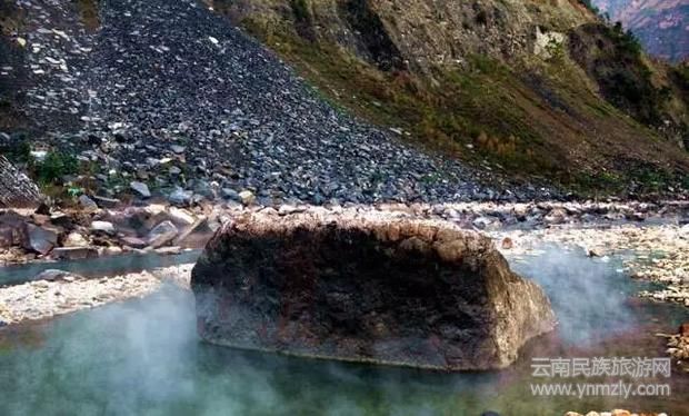 下達基野溫泉,隱藏在普渡河河谷中,途中需經(jīng)過紅軍當年激戰(zhàn)金沙江的紀念碑和索橋遺址。