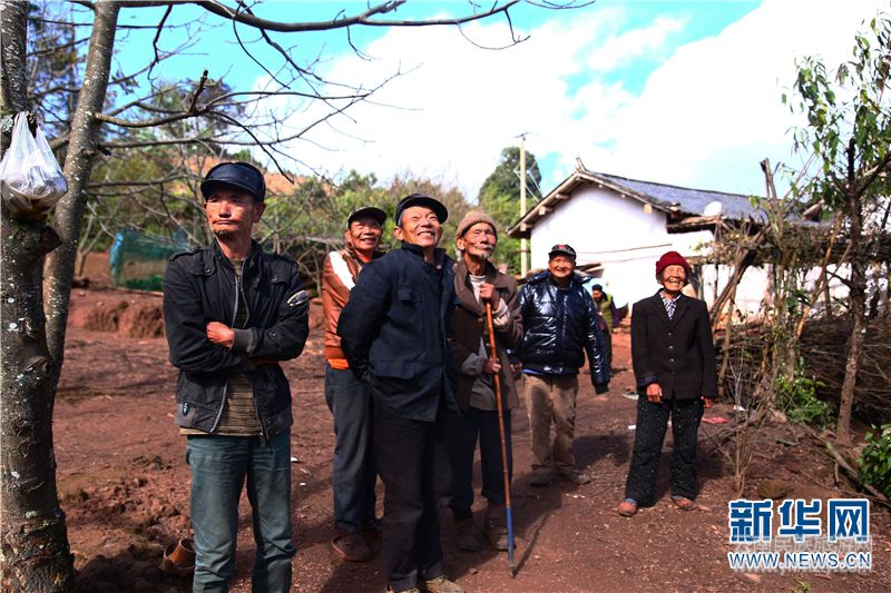 上火山康復(fù)村的老人們與志愿者合影。丁凝 攝