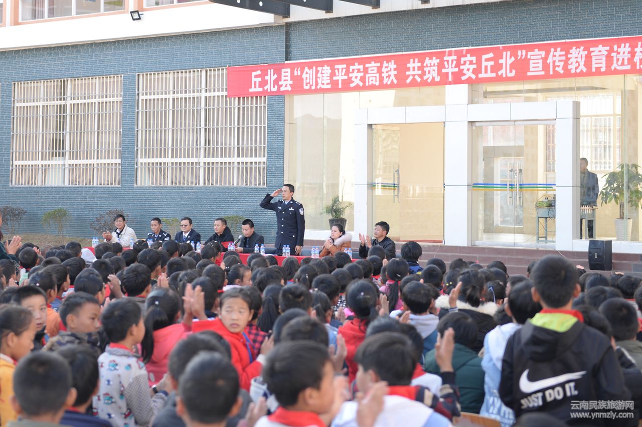 在寒假來臨之際,為了讓鐵路沿線的中小學(xué)生過上一個安全快樂的假期,在云桂鐵路開通一周年之際,開遠鐵路公安處團委主動謀劃,積極聯(lián)系丘北縣護路辦等部門,在云南丘北縣密納小學(xué)開展了“創(chuàng)建平安高鐵、共筑平安丘北”為主題的鐵路安全知識宣傳活動。