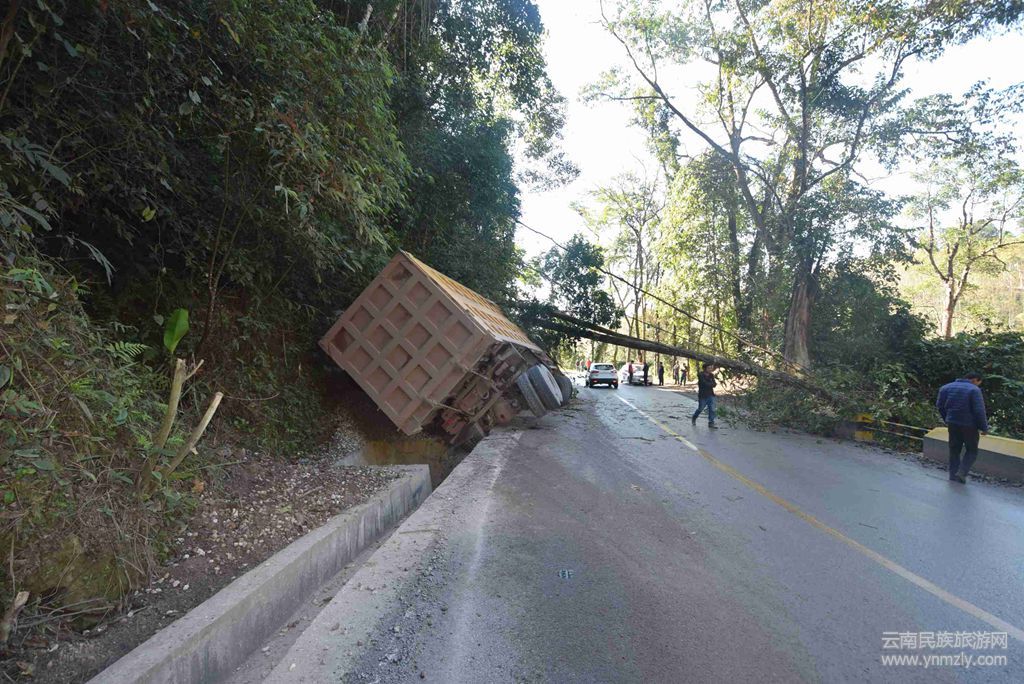 1月22日上午10時(shí)35分許,勐臘縣公安局交警大隊(duì)接到報(bào)警稱:一輛滿載石頭的重型貨車在國道213線龍林下坡路段(往勐臘縣方向)發(fā)生側(cè)翻,道路交通中斷,請交警前去處置救援。