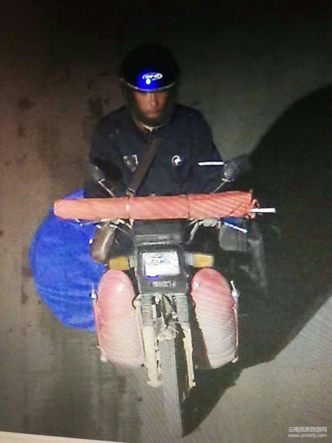 根據(jù)錢先生反映的情況,民警調取了案發(fā)時段高橋頭周邊的監(jiān)控視頻,查看是否有可疑人員在錢先生家附近出現(xiàn)過。很快,監(jiān)控畫面中,一個戴著頭盔、騎摩托車的可疑男子引起了民警注意。