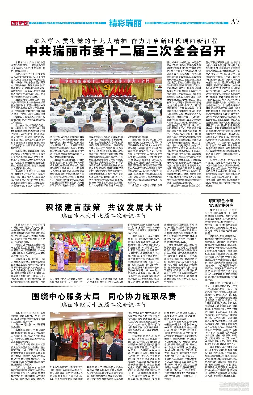 全會(huì)號(hào)召,全市廣大黨員干部和各族人民要高舉習(xí)近平新時(shí)代中國(guó)特色社會(huì)主義思想偉大旗幟,更加緊密地團(tuán)結(jié)在以習(xí)近平同志為核心的黨中央周?chē)谥菸⒅菡膱?jiān)強(qiáng)領(lǐng)導(dǎo)下,堅(jiān)決擔(dān)起歷史責(zé)任,緊盯目標(biāo)、扎實(shí)苦干,不斷干出新業(yè)績(jī)、展示新形象、創(chuàng)造新輝煌,奮力開(kāi)啟新時(shí)代瑞麗開(kāi)發(fā)開(kāi)放新征程!通訊員 楊雪梅 (文章來(lái)源環(huán)球游報(bào)2018年1月26日第1126期A7版)