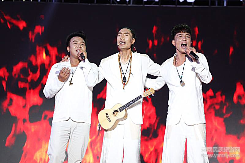 演出中,精彩的歌舞表演將晚會推向了高潮,一陣陣喝彩聲此起彼伏。《一壺老酒》、《彩云藍天》、《陽光會把你照耀》、《納西三部曲》等節(jié)目表演,贏得了現(xiàn)場熱烈地掌聲。嘹亮的歌聲響徹夜空,經(jīng)久不息。