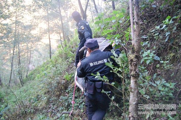 蜿蜒盤旋的山間公路,加之冬天里低溫、大霧、路面結(jié)冰,一輛微型車不慎翻下200米深的山谷,駕駛員生命岌岌可危,為贏取救援時(shí)間,紅土坡派出所民警、輔警“一人背,兩人扶”,輪番上陣,背著傷者艱難向公路邊靠攏,等待醫(yī)護(hù)人員急救。