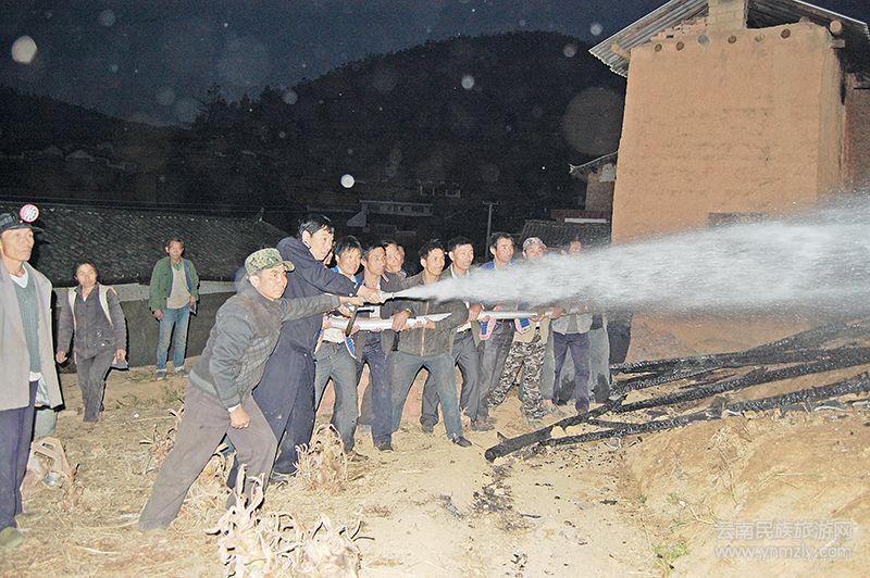 2017年1月31日正值正月初四,當(dāng)日18時(shí)許,南華縣雨露白族鄉(xiāng)灑披武村委會上村一民房起火,情況緊急。接到報(bào)警后,雨露派出所民警立即攜帶裝備趕赴現(xiàn)場進(jìn)行處置。到達(dá)現(xiàn)場后,由于正值春風(fēng)季節(jié),火勢難于控制,民警一方面對火災(zāi)現(xiàn)場周圍圍觀的群眾進(jìn)行疏散并告誡其遠(yuǎn)離現(xiàn)場,另一方面立即組織群眾協(xié)助開展滅火工作。經(jīng)過長達(dá)四個(gè)多小時(shí)的努力,終于將明火全部撲滅,避免了火災(zāi)進(jìn)一步蔓延,事故未造成人員傷亡。火災(zāi)撲救結(jié)束后,全身濕透、饑腸轆轆的救火民警才松了一口氣。