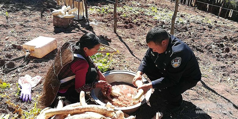 南華縣五街鎮(zhèn)盛產(chǎn)蘿卜,每年冬季,一排排的蘿卜條晾曬在田間地頭,形成了一道靚麗的風(fēng)景。五街派出所民警樊建勇作為脫貧攻堅(jiān)戰(zhàn)線的一名黨員干部,經(jīng)常深入到幫扶對象家中與扶貧戶共同勞動(dòng),走訪慰問。鼓勵(lì)幫扶對象堅(jiān)定信心,在黨委政府的幫扶下,通過積極勞動(dòng)改變家庭生活和增加收入,戰(zhàn)勝困難,爭取早日脫貧。