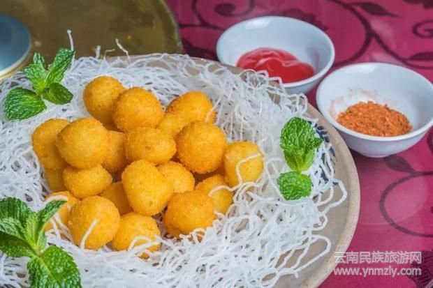 手工做成的洋芋圓子,炸制金黃
