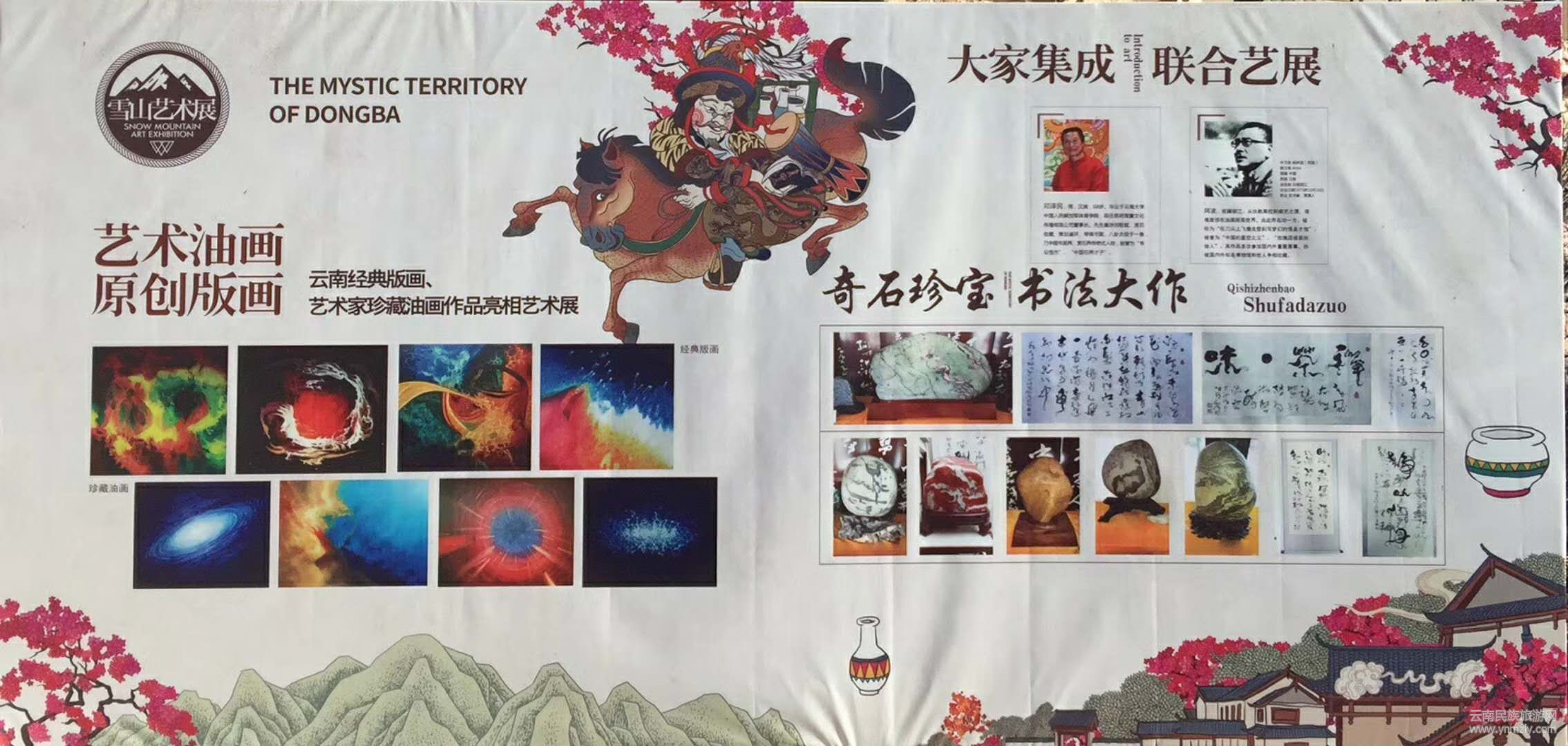 正月初三至初七,東巴秘境繼于中國非遺(書畫、賞石)文化藝術珍品館,中國非遺·云南木刻版畫藏品展館舉行首屆“雪山藝術展”后特邀中國書畫界、賞石界傳奇式人物,“書壇怪杰"、"中國石界才子”、國家專家人才庫入選人。