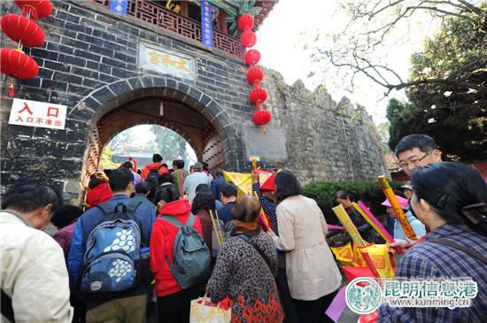 昆明信息港訊 記者許丹 楊雁賞茶花、趕廟會、摸福、品名特小吃……2月24日,農歷正月初九,大部分市民已經回歸工作崗位,而在這一天前往金殿名勝區(qū)的市民和游客卻是接踵而來。據(jù)悉,當日共有7.5萬人登鳴鳳山敬香祈福、賞花游園。今年金殿的廟會除了在正月初九舉辦之外,還將延續(xù)到正月初十,豐富而熱鬧的廟會活動,將讓廣大市民和游客體驗最正宗傳統(tǒng)的老昆明年味兒。