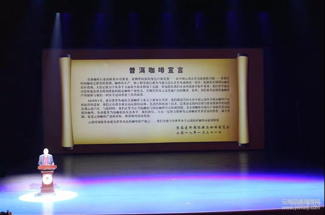 1月31日,首屆普洱國際精品咖啡博覽會在普洱大劇院舉行閉幕儀式。閉幕式上,世界精品咖啡杯品體系創(chuàng)始人泰德·林格先生宣讀了《普洱咖啡宣言》。