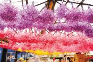 除了看“百草”,游人還可參觀保真花生產(chǎn)線,看一朵玫瑰是怎么置入植物延壽保鮮液,從而擁有3年的漫長(zhǎng)“花期”。