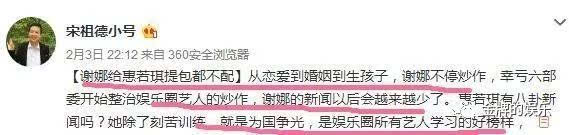 而在謝娜生下了雙胞胎寶寶后宋祖德又發(fā)文稱,六部委開始整頓娛樂圈明星炒作是件好事,像謝娜這樣的藝人給真正低調的明星提鞋都不配。
