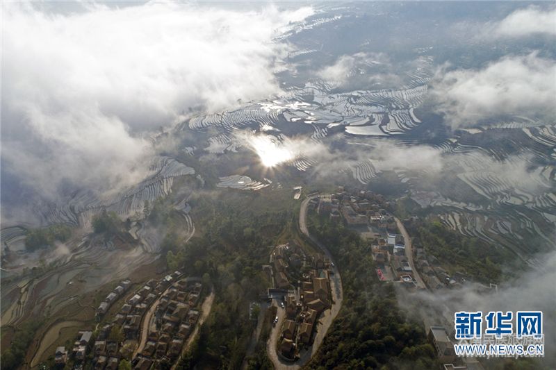 (“飛閱”中國)航拍云南紅河哈尼梯田 如夢似幻的絕美畫卷