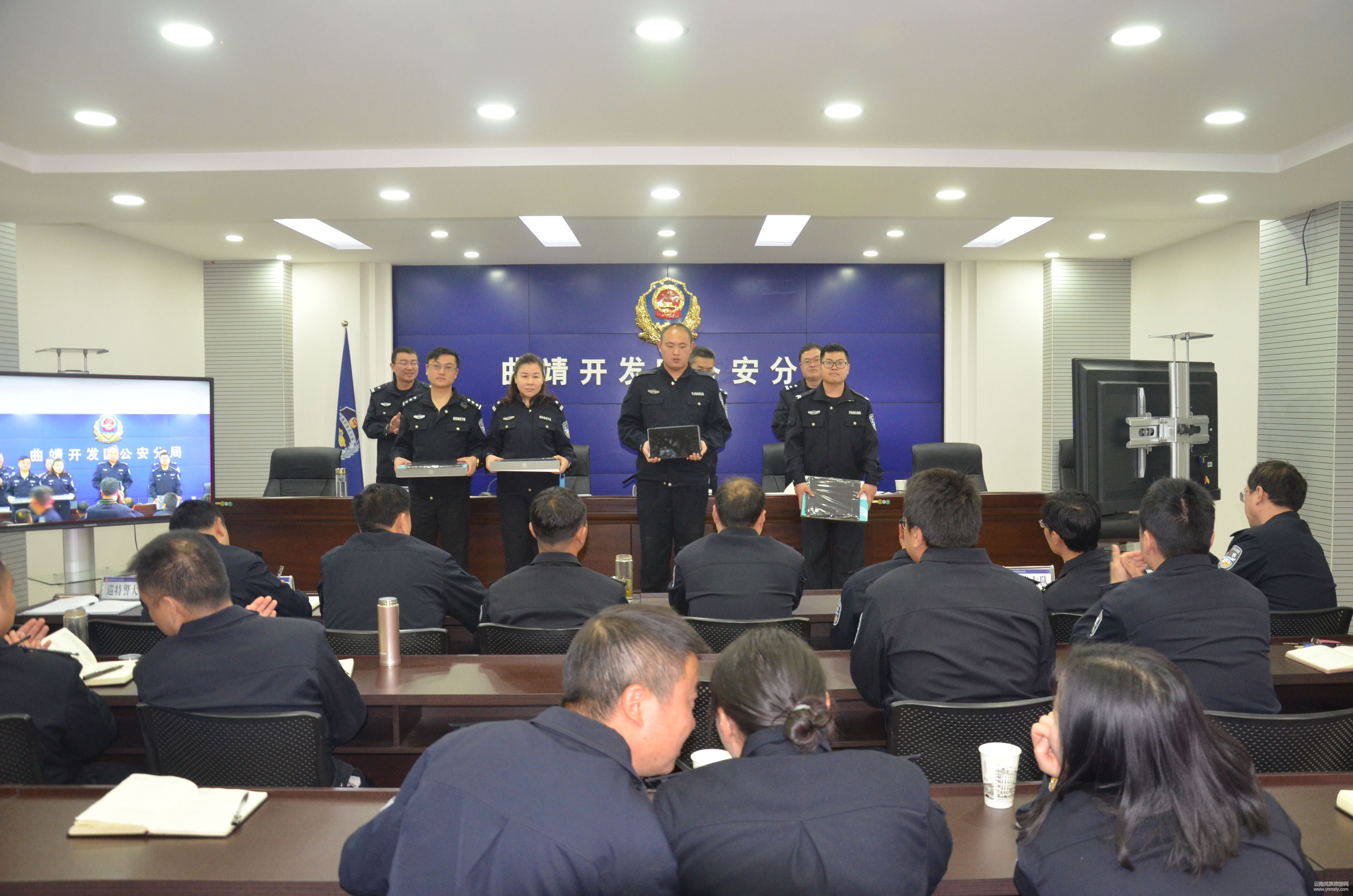曲靖開發(fā)區(qū)管委會副主任、政法委書記、分局黨委書記、局長賴韋名出席會議并講話。分局黨委副書記、政委趙艷主持會議,分局班子成員、當日未值班的民警和輔警參加了會議。