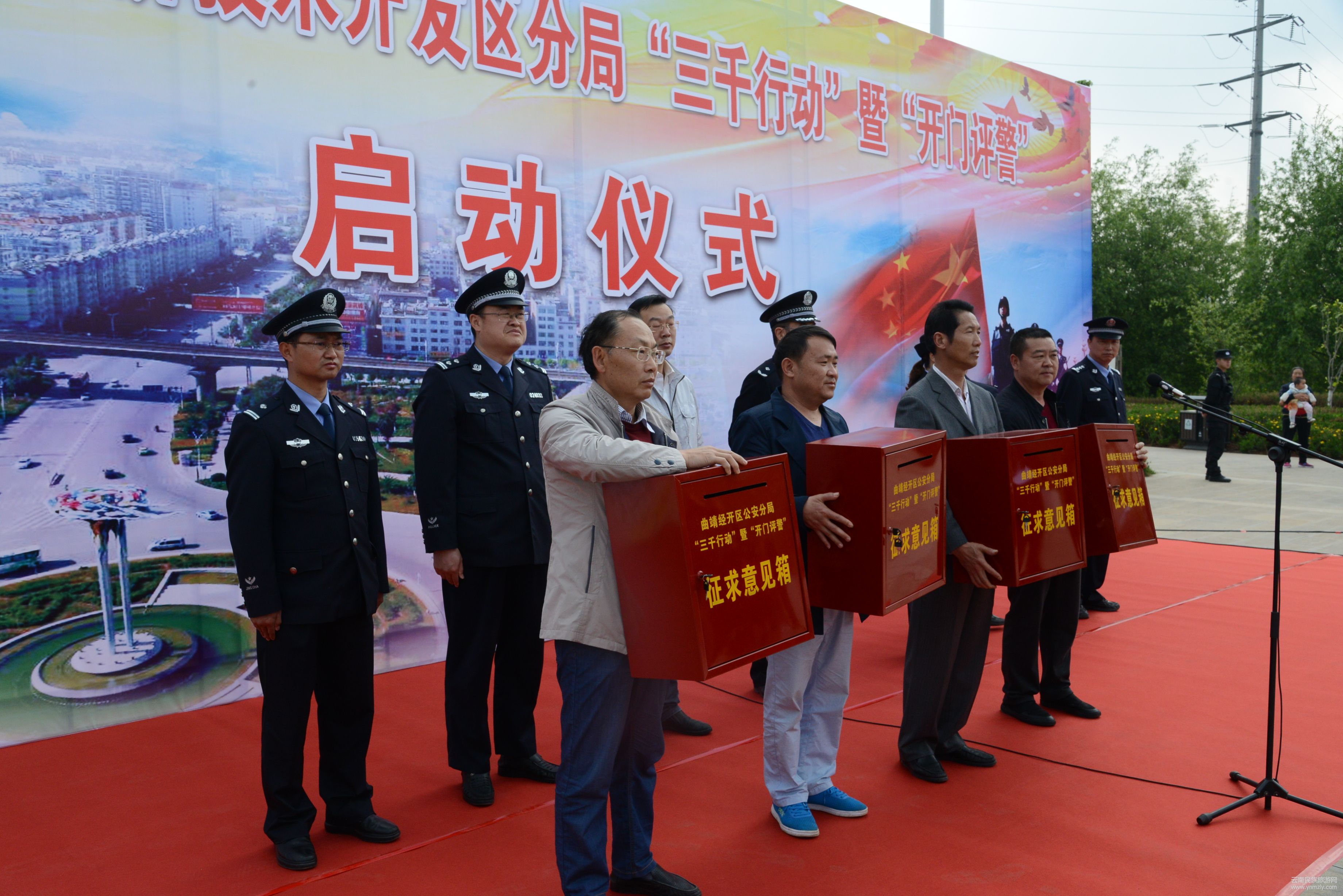 3月30日上午,曲靖市公安局開(kāi)發(fā)區(qū)分局“三千行動(dòng)”暨“開(kāi)門評(píng)警”啟動(dòng)儀式在曲靖外灘泰豐公園廣場(chǎng)舉行。