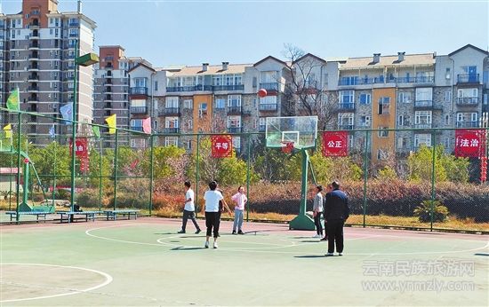午后,天藍(lán)氣清,官渡區(qū)矣六街道漁村社區(qū)的群眾文化娛樂(lè)廣場(chǎng)上,嬉戲的孩子、健身的老人、打球的青年、聊天的婦女,其樂(lè)融融。