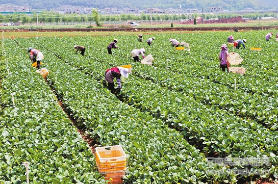 來(lái)自廣東投資的云南宏升蔬菜種植發(fā)展有限責(zé)任公司成立于2013年4月,是集蔬菜種植、加工、儲(chǔ)運(yùn)、銷售于一體的現(xiàn)代蔬菜產(chǎn)業(yè)化經(jīng)營(yíng)龍頭企業(yè)。公司在瀘西縣中樞鎮(zhèn)現(xiàn)有種植基地8000畝,其中設(shè)施基地1200畝、露天基地6800畝,并配套噴滴灌、冷庫(kù)等設(shè)備。蔬菜大多銷往廣東和香港,受到廣大消費(fèi)者青睞。2017年,公司共生產(chǎn)銷售商品蔬菜2萬(wàn)噸,實(shí)現(xiàn)銷售收入1.2億元。雇用農(nóng)民工1250余人,其中有126名建檔立卡貧困人口,人均增收2.7萬(wàn)元,輻射帶動(dòng)周邊農(nóng)戶發(fā)展蔬菜5萬(wàn)畝。圖為云南宏升蔬菜種植基地。(記者 張彤 攝)