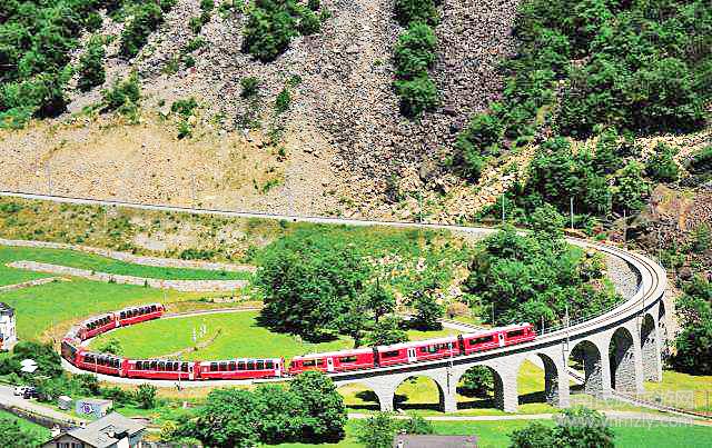 瑞士庫(kù)爾,伯爾尼納快車的發(fā)車點(diǎn)之一,270度的全景觀光車廂。2008年,意大利、瑞士跨國(guó)聯(lián)合“申遺”,橫貫兩國(guó)之間阿爾卑斯山脈的阿爾布拉/伯爾尼納線路成功入選《世界遺產(chǎn)名錄》。伯爾尼納快車可分別以瑞士的庫(kù)爾或圣莫里茨為起點(diǎn),前往終點(diǎn)站意大利的迪拉諾(Tirano)。
