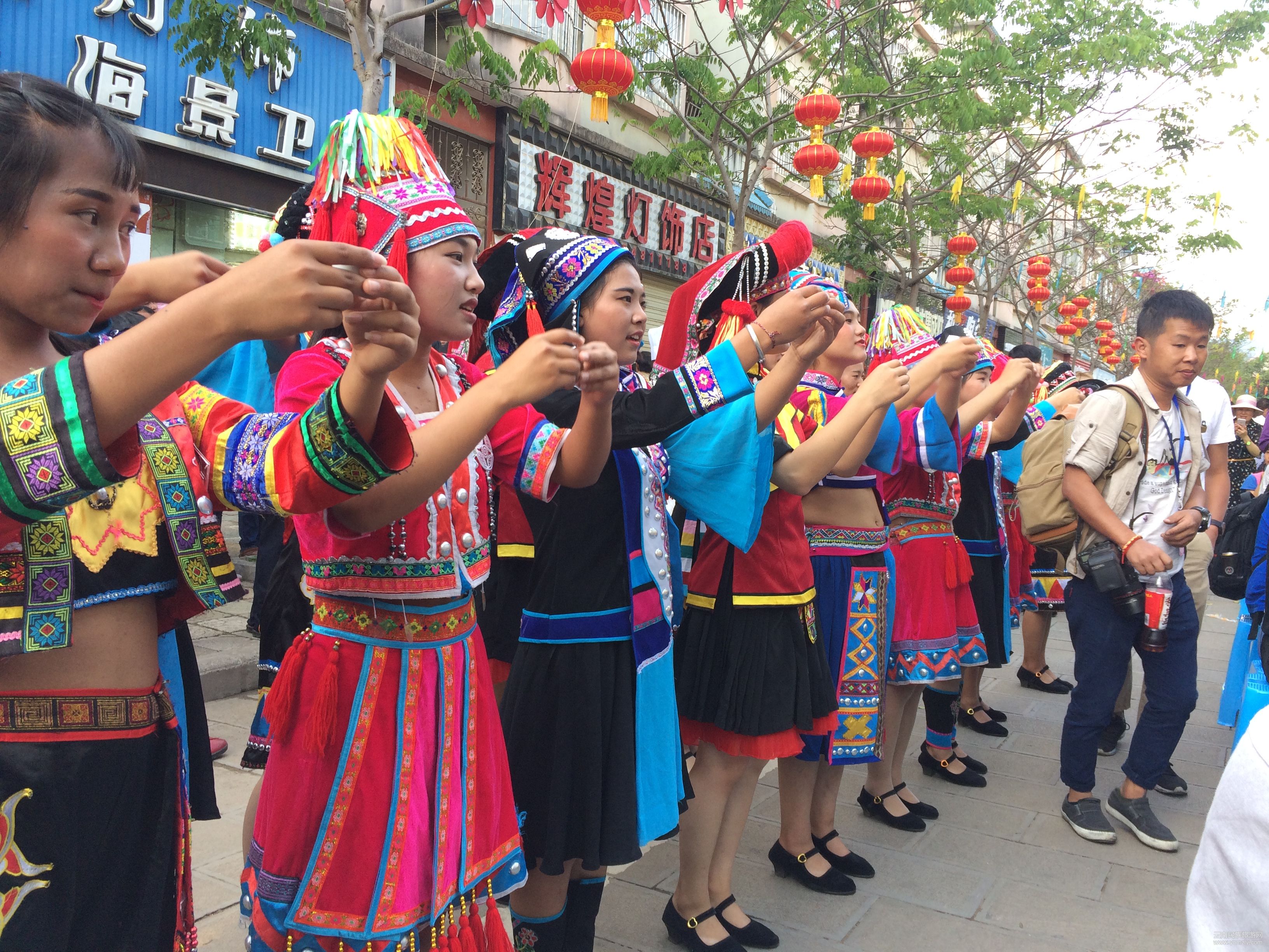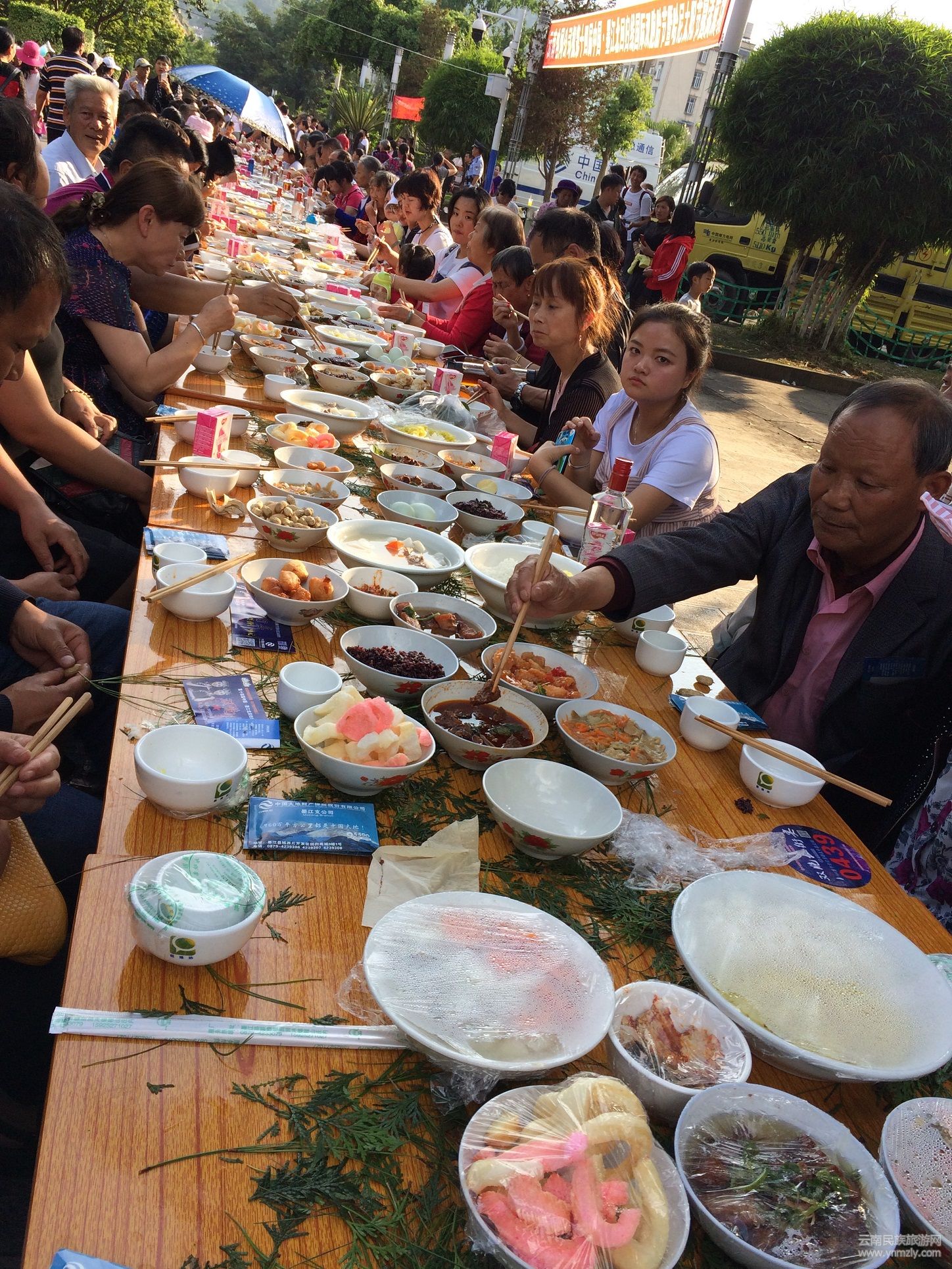 下午18時(shí),一走進(jìn)墨江縣城民俗步行街,街上張燈結(jié)彩,鑼鼓喧天,上千張桌子沿街?jǐn)[起恰似長(zhǎng)龍,這就是獨(dú)具特色的雙胞長(zhǎng)街宴,在宴席開(kāi)始的時(shí)候一群穿著哈尼族服飾的年輕靚麗的姑娘們?cè)诋?dāng)?shù)貥?lè)隊(duì)的伴奏下唱歌跳舞的走進(jìn)了長(zhǎng)街宴,向在坐的外來(lái)游客獻(xiàn)上了滿滿的祝福,讓游客感受到了來(lái)自哈尼之鄉(xiāng)人民的熱情好客之情。