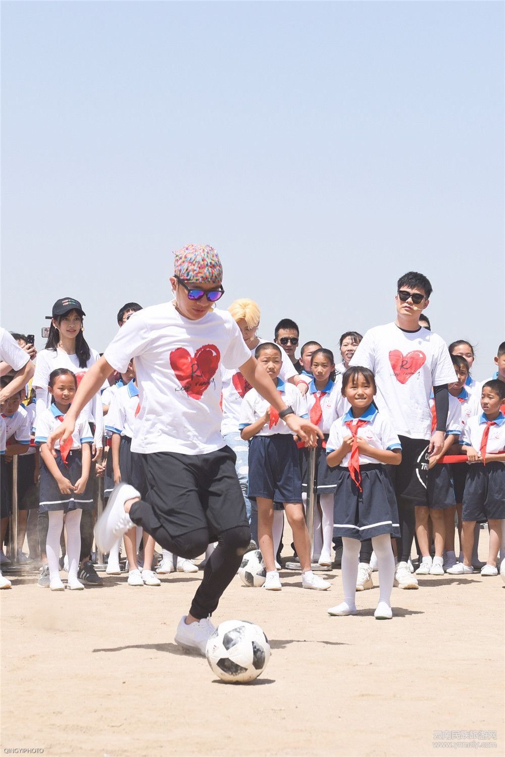 5月27日上午10點,《奔跑吧》聯(lián)合共青團中央宣傳部、浙江團省委、浙江省七彩陽光公益基金會來到天津市靜海區(qū)團泊鎮(zhèn)華源小學,發(fā)起了“向陽奔跑,用愛陪伴”公益活動,以“體育+閱讀”動靜結(jié)合的方式將身體好、品德好、學習好的三好品質(zhì),傳遞給更多的孩子們。活動當日,天氣稍熱,戶外操場因為兄弟團的到來,氛圍更顯熱烈。身著Keep Running愛心T恤的七位成員一出現(xiàn),翹首以盼的孩子們表情開心之中又透著幾分羞澀。不過,一場熱身運動之后,氣氛就被打開了。 兄弟團一人一組動作,依次帶領(lǐng)大家做起了“第R套廣播體操”。伸展運動、體側(cè)運動……“體育老師”們一板一眼,孩子們學得又快又好。