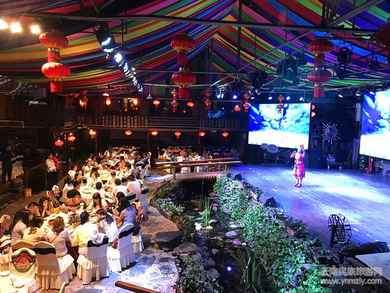 這里是云南歷史文化的一個(gè)縮影,是個(gè)綜合了博物館和舞臺的飯店。來到這里的第一感受就是耳目一新,云南少數(shù)民族的濃郁風(fēng)情隨處可見。