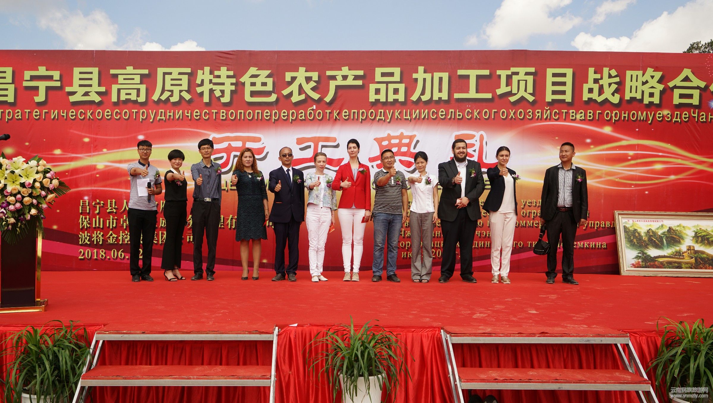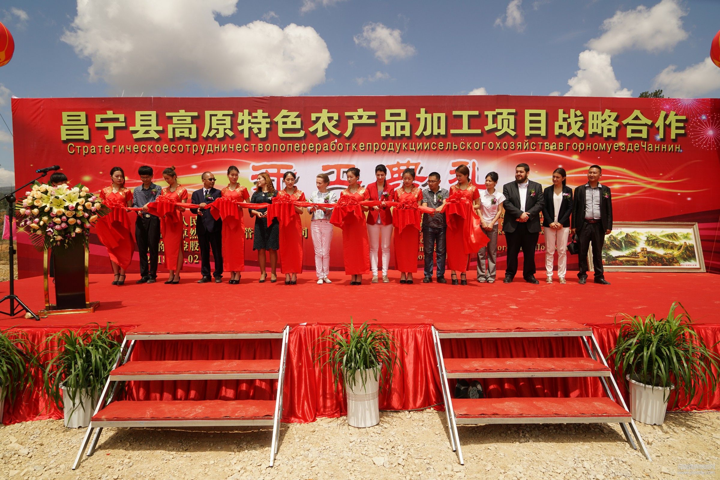 活動當天,縣工信局黨委書記、保山市工貿(mào)園區(qū)昌寧園綜合協(xié)調(diào)辦公室主任楊光先,縣招商局副局長禹忠何,波將金控股集團公司財務總監(jiān)奧利佳、總裁助理拉德米拉,波將金控股集團公司亞洲地區(qū)國際貿(mào)易部經(jīng)理尤努斯、總設計師丹妮婭、首席翻譯官李依瑤,保山卓然天成商貿(mào)有限公司董事長楊文成、副總經(jīng)理嚴會林、趙麗波等出席了本次開工奠基儀式及剪彩儀式。