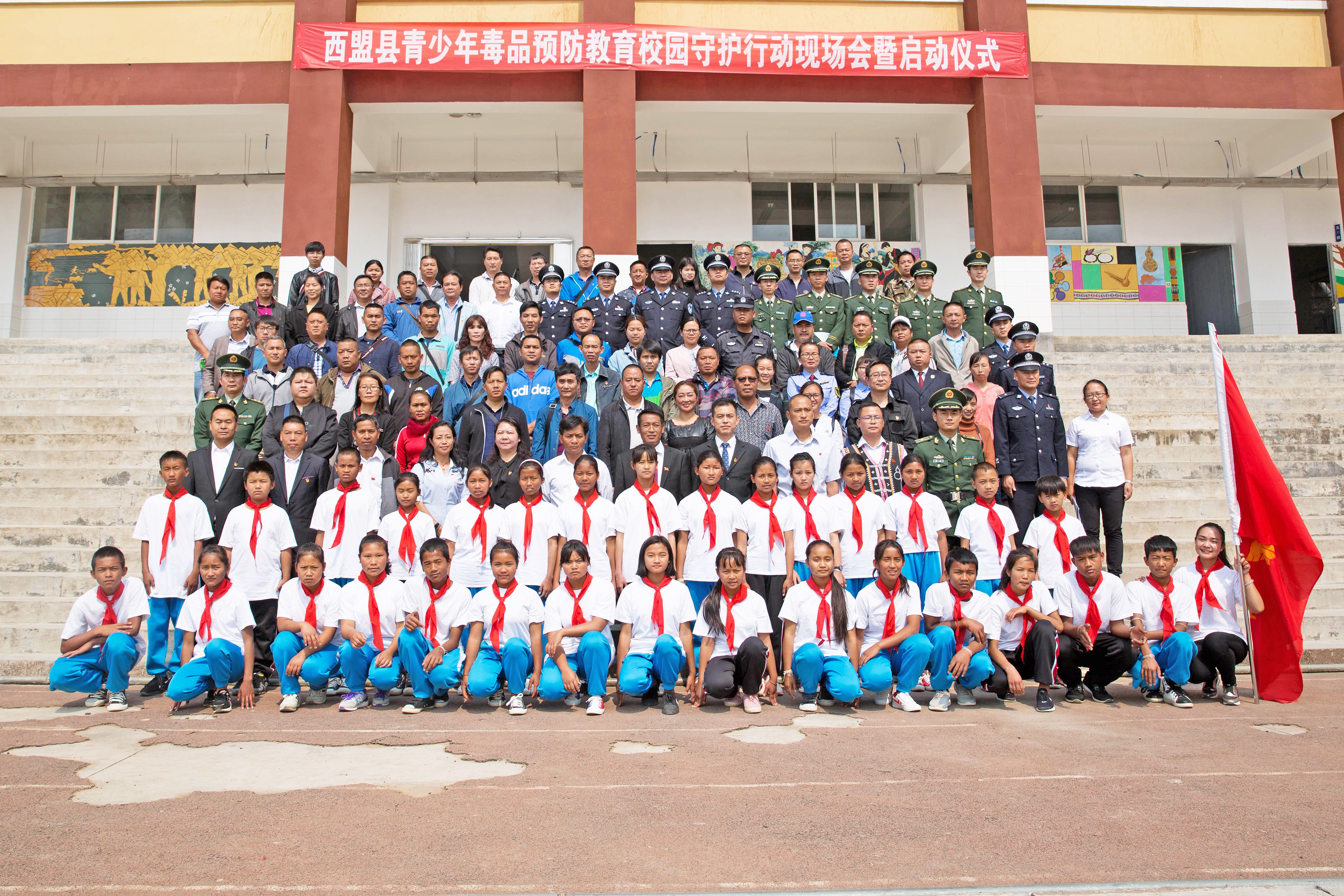 在西盟縣在力所鄉(xiāng)中心學(xué)校舉行的青少年毒品預(yù)防教育校園守護(hù)行動(dòng)現(xiàn)場(chǎng)會(huì)暨啟動(dòng)儀式上,孩子們向來(lái)自社會(huì)各界的嘉賓展示了毒品預(yù)防教育“拍手操”。之后,由身穿志愿者背心的學(xué)校師生組成的禁毒志愿者隊(duì)伍,進(jìn)行了毒品預(yù)防宣誓,演唱了自編自導(dǎo)的《禁毒者之歌》。